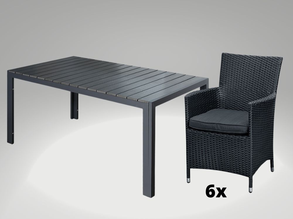 S naší venkovní jídelní sestavou pro 6 osob si můžete užívat dokonalé pohodlí. Ergonomicky tvarovaná křesla jsou vybavena měkkými polštářky, které vám zajistí maximální komfort při dlouhých posezeních. A stůl je dostatečně prostorný pro usazení všech hostů. Jeho odolný povrch navíc odolává poškrábání a otřesům.