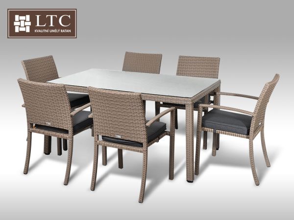 Zahradní nábytek z umělého ratanu - jídelní souprava Orlando 150 s 6 židlemi Armino je pohodlné sezení určené k odpočinku na zahradě, terase, u bazénu ale i jako restaurační a kavárenský nábytek. Tato jídelní sestava z umělého ratanu nabízí pohodlné posezení pro 6 osob, sestává z obdélníkového stolu Orlando a šesti židlí Armino.