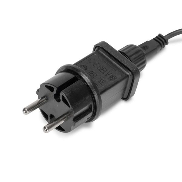 Světelný řetěz je na obou stranách ukončen zaizolovaným konektorem. K jednomu z nich je připojen napájecí kabel se zástrčkou do zásuvky, který je součástí balení. K druhému konektoru můžete připojit další stejný světelný řetěz a tím jej prodloužit.