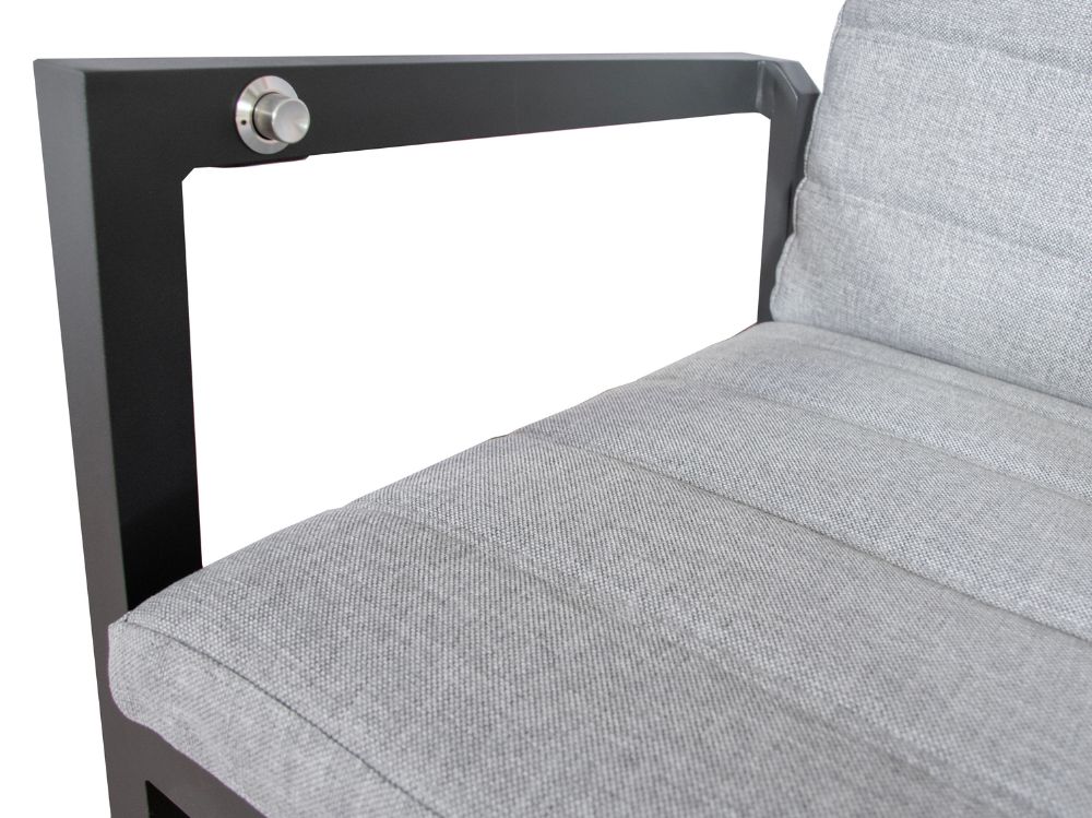 Tento hliníkový zahradní nábytek má pevnou konstrukci z tlustostěnného duralu, která je ručně svařována v ochranné atmosféře. Tato slitina hliníku je nereznoucí, lehká, ale mnohem pevnější a tvrdší než samotný hliník. Konstrukce zahradního nábytku je práškově lakována matnou tmavě šedou barvou.